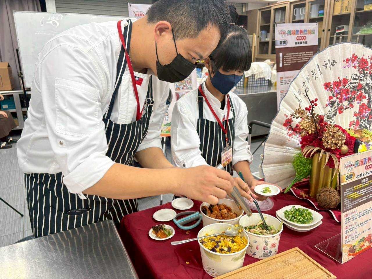 教育局舉辦學校午餐廚藝競賽,以「美味調色盤料理」為主題,各校校廚展現好手藝。(記者林雪娟攝)