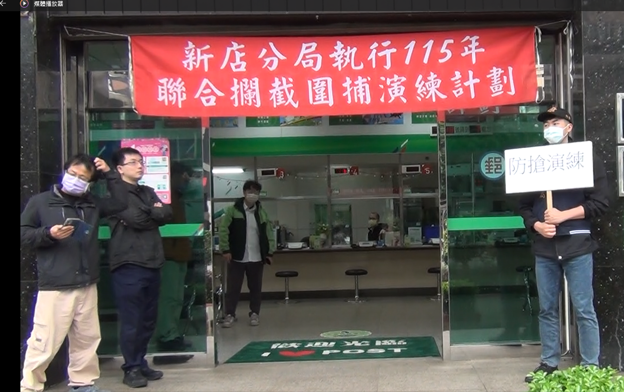 新店警分局指出,本次演練模擬歹徒持械闖入金融機構行搶情境,由行員依標準作業流程即時通報警方,警方接獲報案後迅速派遣線上警力到場,實施封鎖、攔截、蒐證及逮捕等作為,整體流程順暢確實,有效檢視警銀通報及協同處置能力。