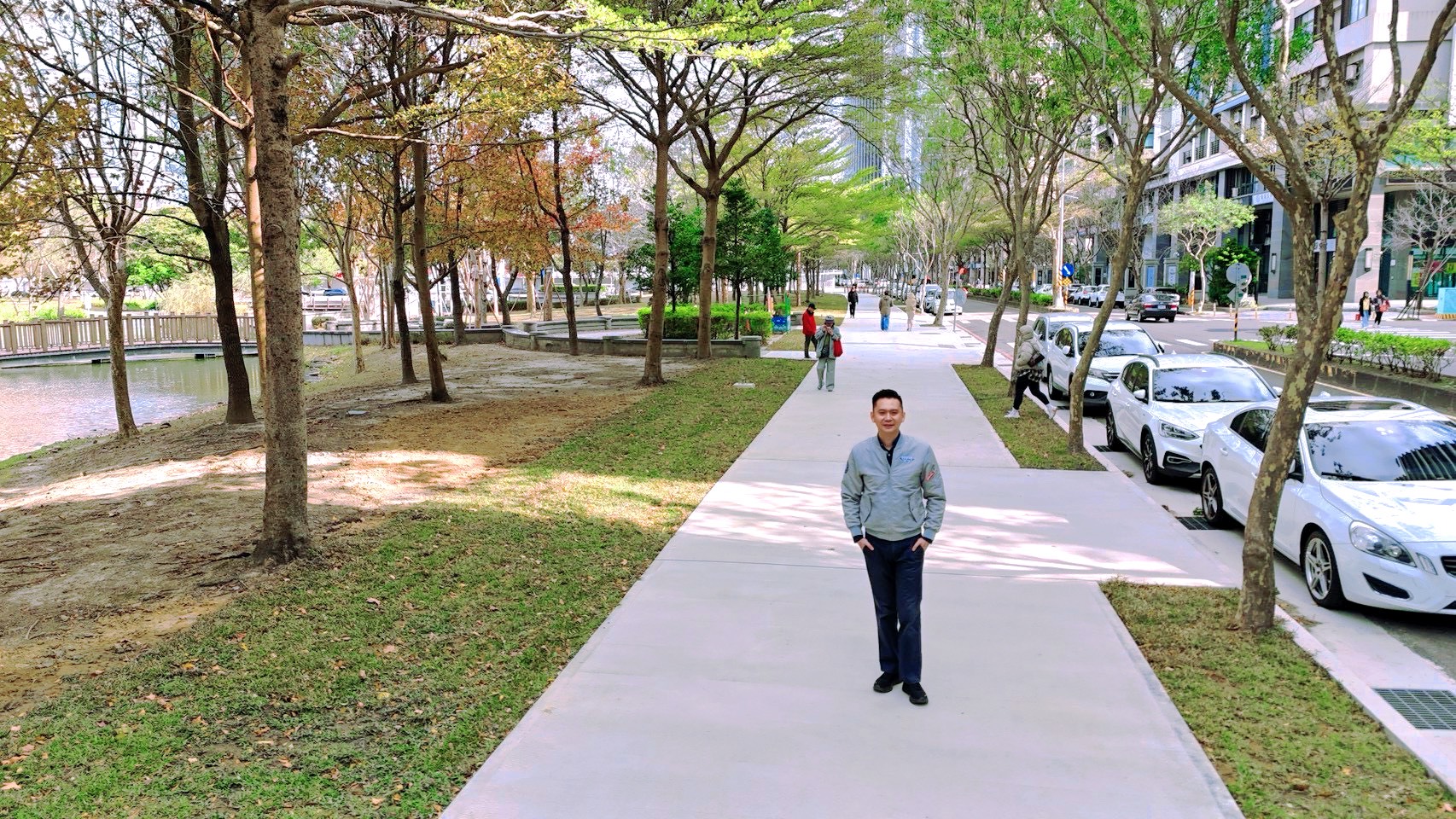 鄭朝方說,此次南面改善工程的一大亮點,在於打造「人樹共生」的多功能步道。除了改善地磚破損與安全性問題,市公所更展現對都市綠木的尊重。針對過去樹穴空間狹小、影響根系生長,導致鋪面隆起並造成行走阻礙的痼疾,此次規劃改以提供「大面積樹穴」的方式,讓樹木擁有足夠的生長空間。透過精準規劃,改善後的綠覆率成功提升超過百分之五,在大幅優化步行空間的同時,也為城市留下了更多綠意與自然氣息,重新開放後,不少市民都驚呼「彷彿置身國外」!