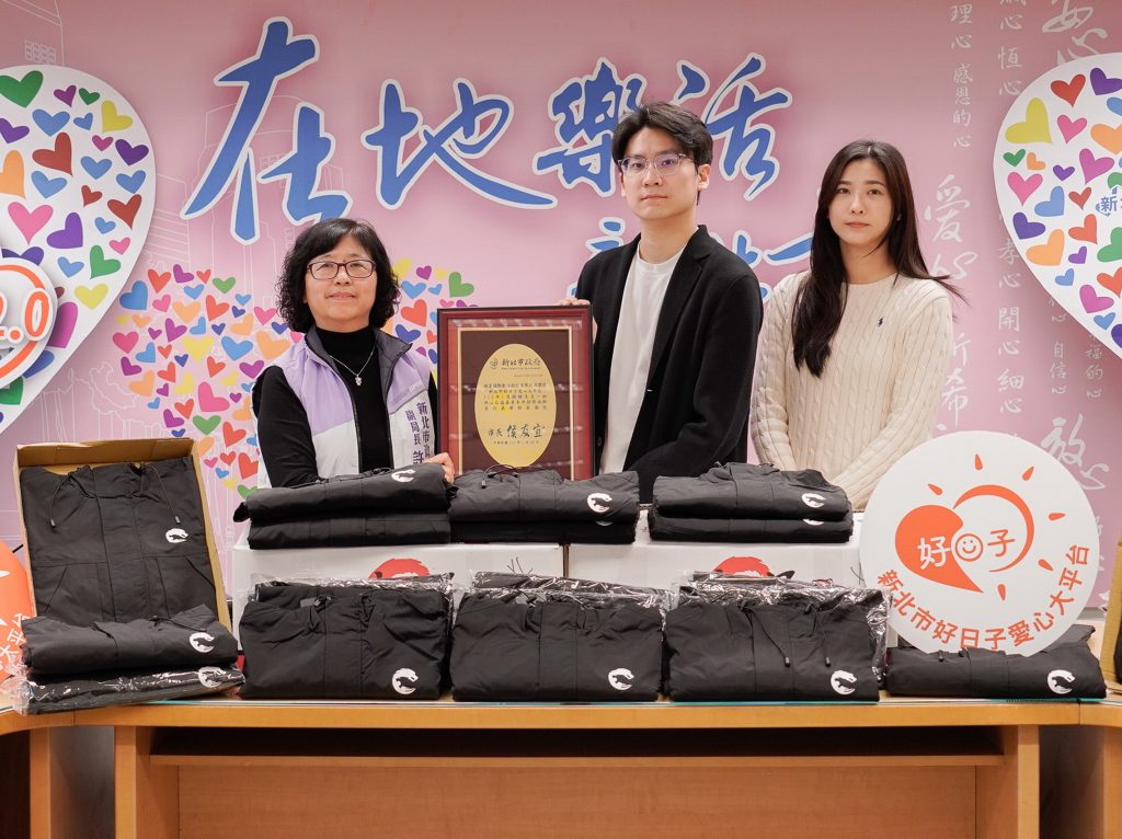 鍇睿國際數位股份有限公司及新北市電競產業總會廿八日下午捐贈市值逾一二九萬元一八五0件連帽外套予新北市,幫助弱勢兒少及長者在寒冷季節獲得溫暖;社會局副局長許秀能代表受贈感謝鍇睿及電競產業總會,這批全黑帥氣的外套,將轉贈給小衛星的兒少及五股老人公寓、仁愛之家的長者。