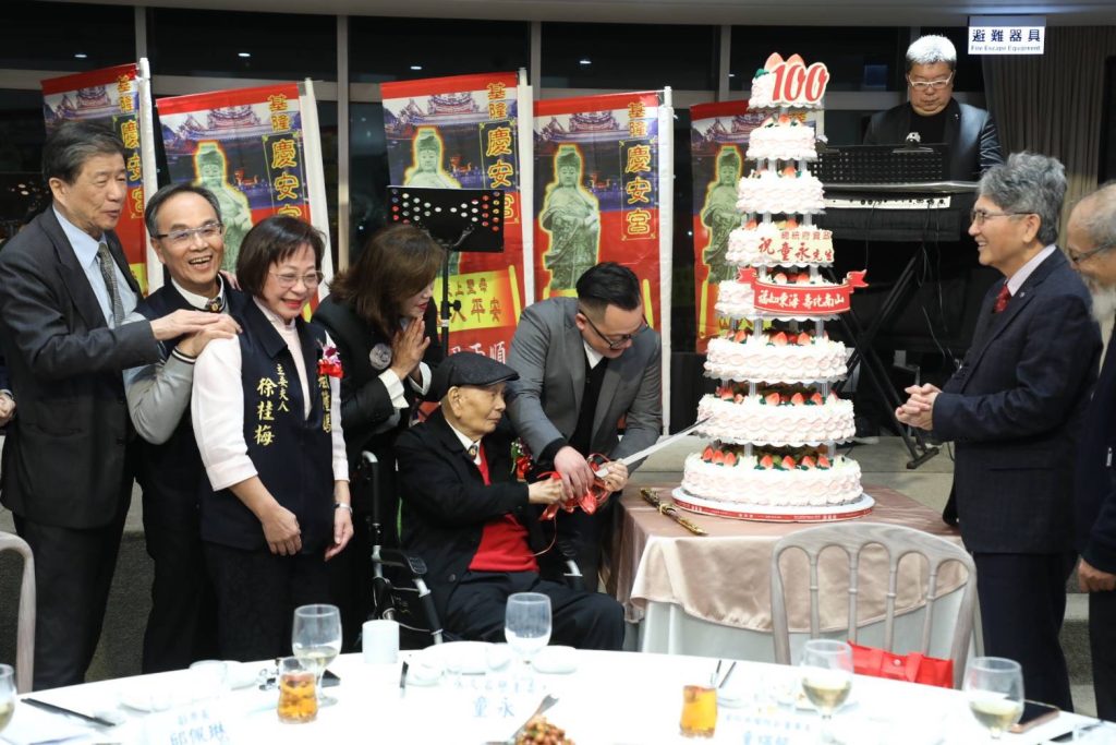 基隆慶安宮二十七日晚間舉行第十二屆新任委員就職典禮暨榮譽主委童永百歲誕辰餐會,現場氣氛隆重溫馨。
