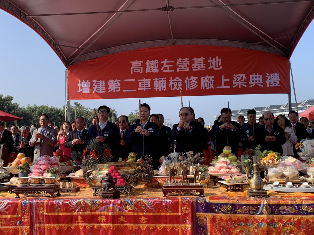 配合新世代列車N700ST引進,台灣高鐵積極建設左營基地第二車輛檢修廠,二十八日舉行上梁典禮,交通部長陳世凱、高雄市長陳其邁、高鐵董事長史哲、高鐵董事鄭光遠,以及地方人士均出席焚香獻祭祈福。