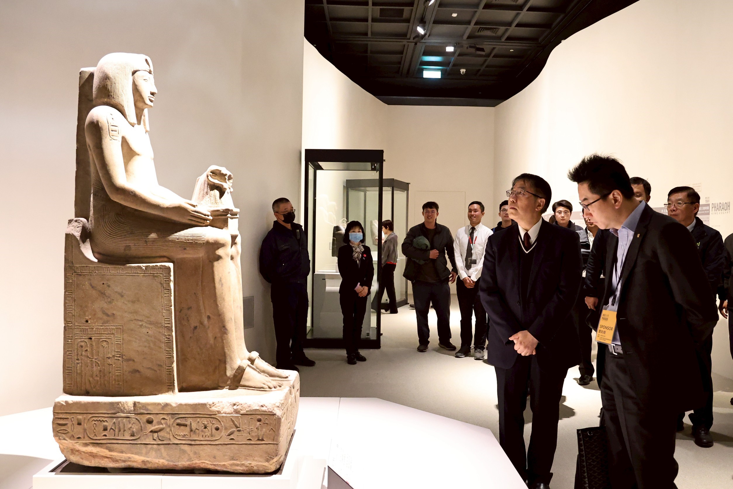 王者降臨!奇美博物館首度與大英博物館攜手,推出台灣史上最大規模的法老文物特展《埃及之王:法老》。二十八日下午開辦開幕,二十九日開展,大英博物館團隊親自抵台,與館方共同迎接這場跨越時空的古文明盛宴。這次展覽打破傳統編年敘事、以「王權視角」為主軸,展出二百八十件大英博物館文物,且99%為首度在台亮相。