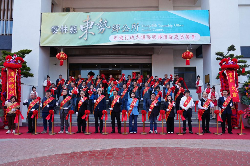 斥資二億二千七百萬、歷時三年半,原地重建的嶄新雲林縣東勢鄉公所,廿九日由副縣長陳璧君、內政部次長吳堂安、立委吳琪銘、立委張嘉郡、議長黃凱、民政處長蕭德恕、鄉長張健福、鄉代會主席劉家瑋等貴賓共同剪綵,見證東勢鄉行政建設重要里程碑。