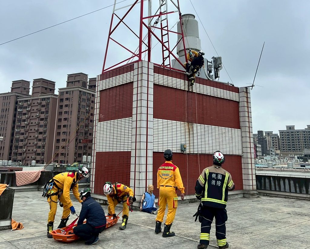 一一四年底,桃園市龜山區發生一起震撼全國的電塔救助案件,一名男子吊掛於六十公尺高的高壓電纜線上。當時桃園特搜隊、轄區分隊與台電通力合作,在嚴苛的高空環境下,利用鋼纜專用滑輪及複雜繩索系統,歷經數小時艱難作業才成功將人員垂降下放。這起案件不僅凸顯繩索技術的重要性,也讓消防局意識到:「救援速度的關鍵,在於第一線分隊與特搜隊之間的無縫接軌。」