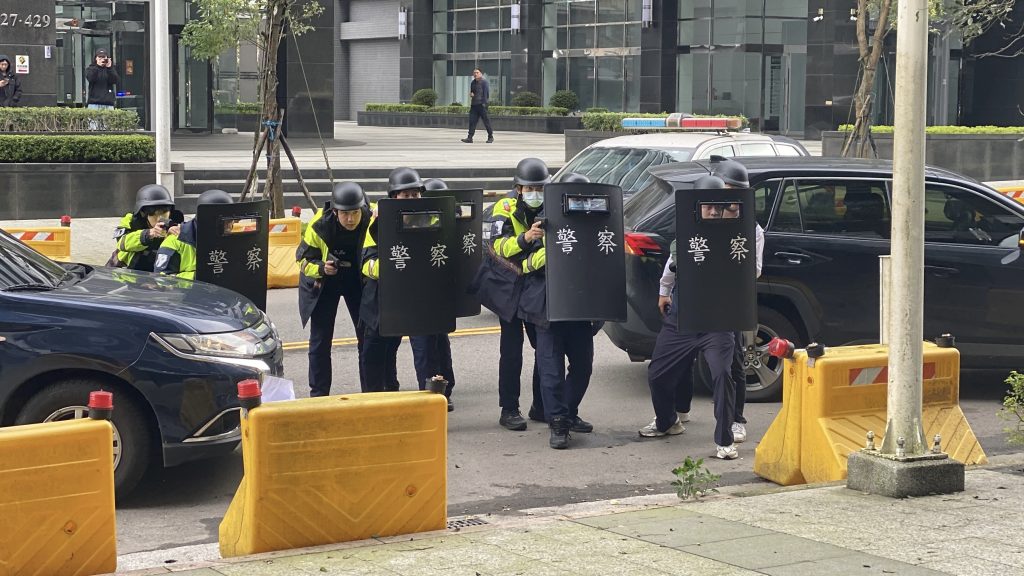 為有效遏止強盜、搶奪、擄人等重大社會治安案件,汐止警除加強各金融機構、銀樓、商(賣)場、超商等巡邏守望勤務外,更於今(29)日10時,結合汐止區農會實施金融機構防搶演練,假想金融機構遭搶後之攔截圍捕查緝,藉此演練,檢視轄區遇重大刑案時,員警實施攔截圍捕狀況及勤務指揮中心勤務調度指管效能,以考驗員警實況執勤應變能力,讓員警熟悉各類重大案件發生之攔截圍捕作業程序,正確操作運用車辨系統及AI偵蒐技巧,俾迅速緝獲歹徒,有效防制搶奪、強盜等重大刑案,維護民眾生命財產安全。