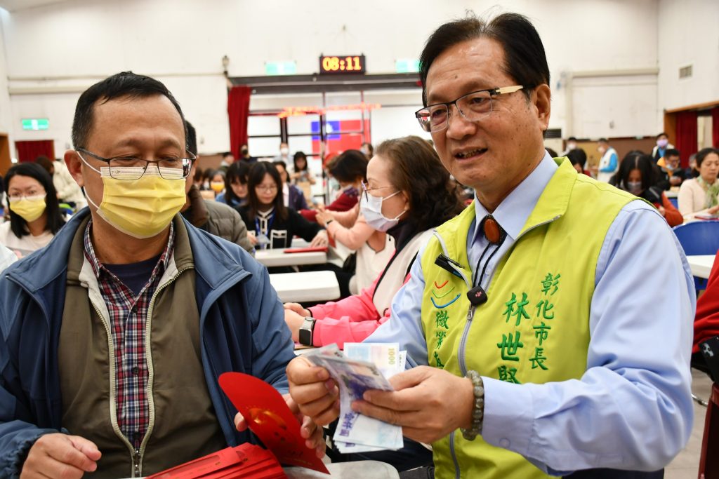 上午十點起,市長林世賢分別前往南興里社區活動中心,以及位於中興路的光南里辦公處等地方,將禮金紅包親手交給長者們,並向長者們提早拜年,也祝福大家身體健康。