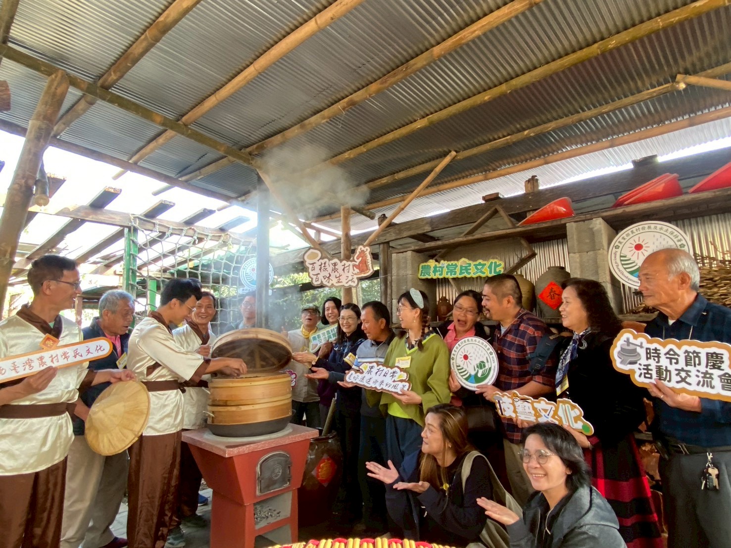 當炊煙升起就是農村的幸福味,廿九日農村發展及水土保持署台南分署在新市區張氏農場,舉辦一場別開生面的南台灣農村常民文化「開灶」飄香活動。當大灶下的荔枝柴燒出裊裊炊煙,也揭開一場復古的「開灶儀式」,且在揭開大灶鍋蓋後,象徵南台灣農村常文化聯盟正式「起家」了。