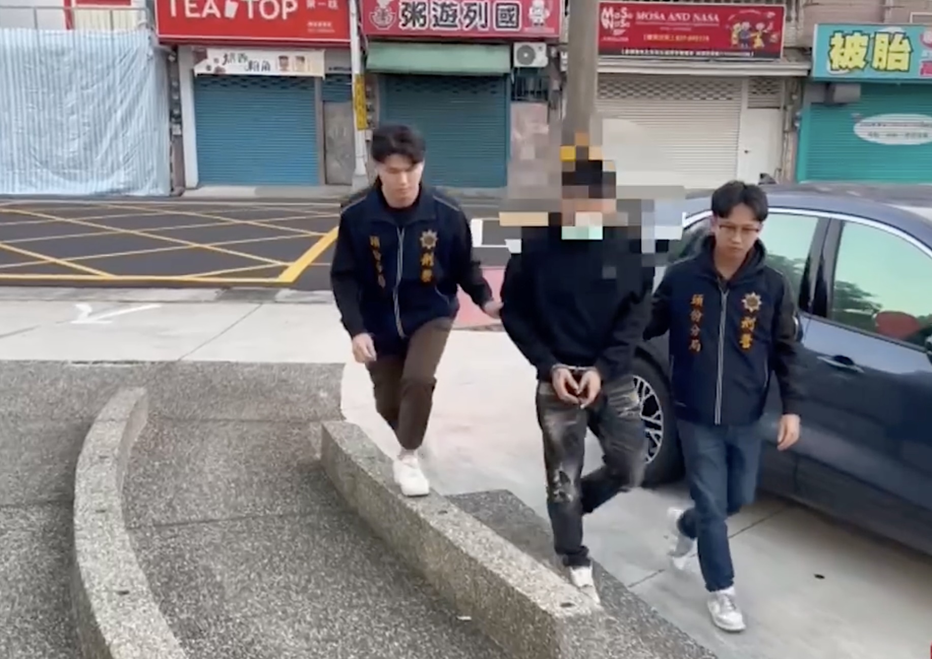 苗栗縣頭份市一間KTV於二十九日凌晨發生鬥毆事件,雙方人馬酒後口角爆發全武行,其中三十歲段姓男子(中)拿出摺疊刀攻擊刺傷四人,其中莊姓男子傷勢嚴重,送醫後不治身亡。警方火速將段嫌在內等滋事分子逮捕送辦。(警方提供/中央社)