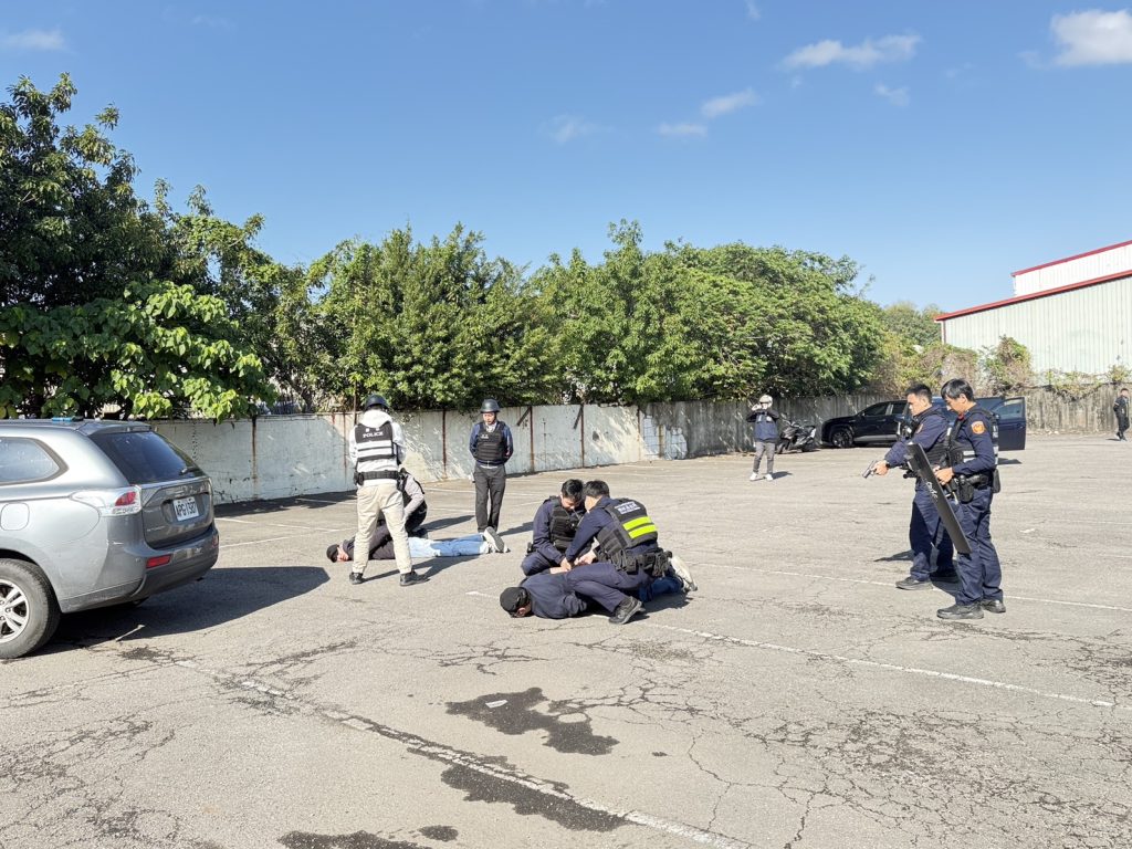 年關將近,為增進金融機構防搶意識,新北市樹林警分局於昨(29)日下午在樹林農會圳安分部舉行防搶攔截圍捕演練,情境模擬2名由員警假扮的搶匪荷槍實彈進入農會內行搶,更對空鳴槍要求行員配合,得手後旋即逃逸;過程中行員也展現出對防護機制的熟稔,不驚慌並配合歹徒,記下歹徒特徵、人數、車輛、逃逸方向等資訊,並伺機觸動警報器通報警察分局派遣線上警力進行攔截圍捕。