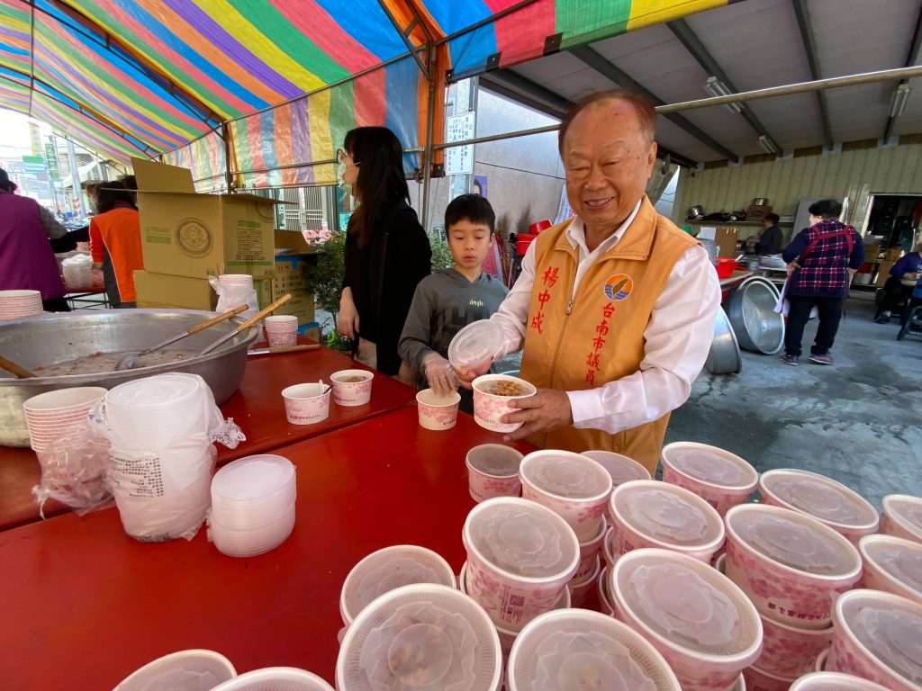 由於粥品香氣四溢,途經的民眾也都一一停下腳步,排成長龍,有秩序的等著領取粥品,楊中成則在現場一一分送粥品給大家,也提前祝福大家新年快樂,民眾也回以感謝,並肯定楊中成為民喉舌的辛苦。