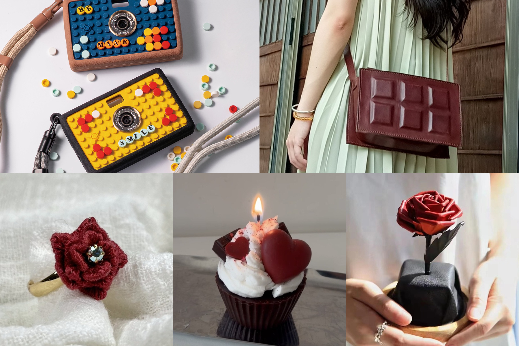 巧克力的迷人之處,不只存在於味覺,Pinkoi挖掘巧克力系設計選物,將濃郁的棕色調、焦糖與可可色融入配件中,即使情人節過去,這份微甜氛圍依然能自然地留存在日常,成為穿搭中內斂且耐看的細節。來自日本的地下3階,將巧克力波斯菊耳環以軟陶手工捏製,保留了花瓣的柔美輪廓,深可可色調則賦予花一份溫潤感,讓耳朵的點綴低調卻極具質感;Light Candle的生巧克力塔造型蠟燭,則精緻的令人屏息,逼真外型搭配點燃後的暖心香氣,即便只是靜靜擺在桌角,也能為居家空間帶來柔和的溫度;而moomoo的巧克力側肩包,選用溫潤飽滿的棕色皮革,如巧克力磚般的俐落方塊線條,是能長久陪伴、越用越有味道的日常實用配件。