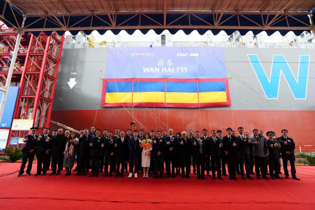 萬海航運1 月 30 日上午於上海外高橋造船公司舉行「WAN HAI 711 爾春輪」命名典禮暨公益捐贈活動。命名典禮邀請浙江恆碩實業有限公司董事長華晨佐的夫人唐祉禕女士擔任「WAN HAI 711 爾春輪」的命名人,為新船獻上航行順遂、豐盈滿載的祝福,在現場貴賓的觀禮見證之下,命名典禮圓滿完成。