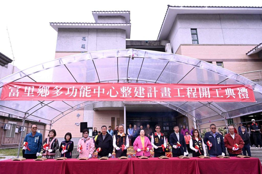 花蓮縣文化局協助富里鄉公所代辦執行之「富里鄉多功能中心整建計畫工程」,三十日舉行開工典禮,縣長徐榛蔚與地方民意代表及鄉親們共同見證富里鄉重要公共建設正式啟動。
