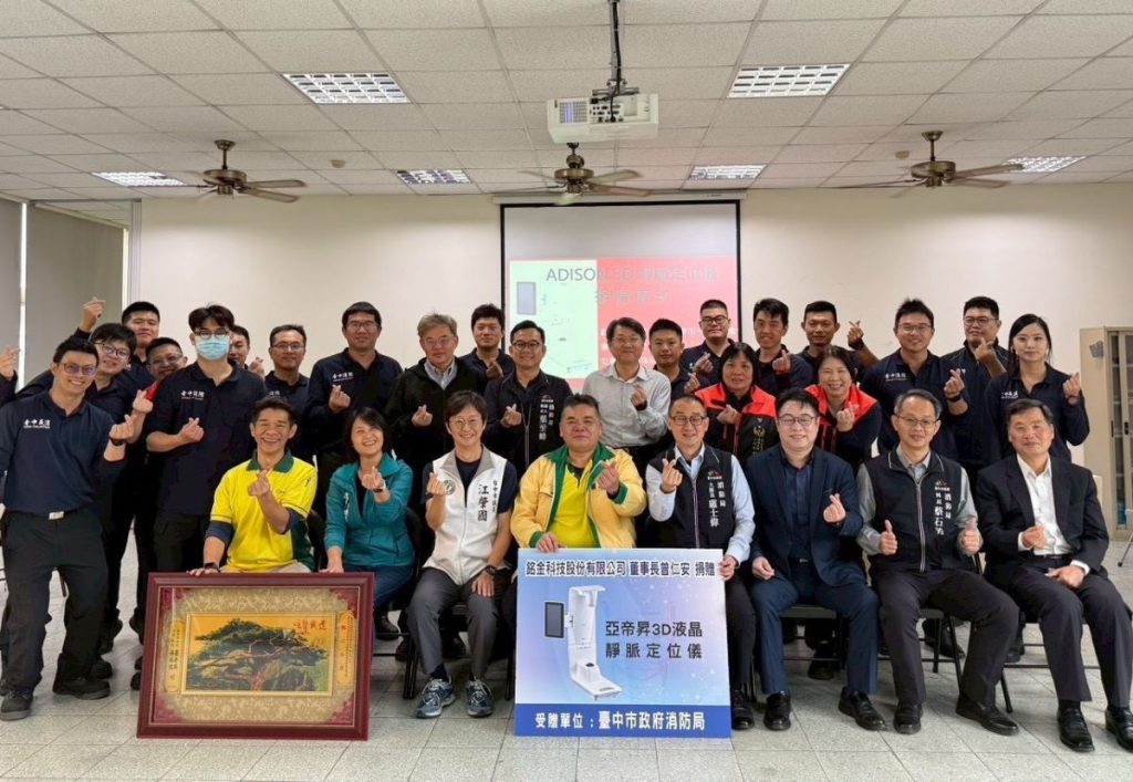 為提升台中市到院前緊急救護品質,強化救護人員於急救現場執行靜脈輸液的效率與成功率,銘金科技曾仁安董事長慷慨捐贈三組「3D靜脈定位儀」予台中市政府消防局專責救護隊,以實際行動支持第一線救護工作。此項先進設備的導入,將有效提升急重症患者的即時處置品質,為市民爭取寶貴的黃金救命時間。