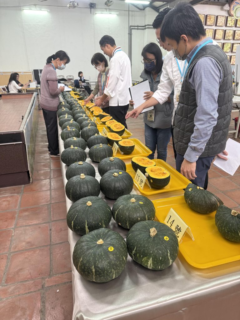 本次栗南瓜品質評鑑活動廣邀全國栗南瓜農友參與,依重量分為大果組及小果組進行評比,經初級評選後,共有大果組四十二組、小果組十八組進入複賽決選。所有參賽樣品皆須通過農藥殘留檢測,確保產品安全無虞,並依外觀、熟度、熟度、甜度、口感及整體品質進行專業評選,展現各產區農友在栽培管理上的用心與實力。