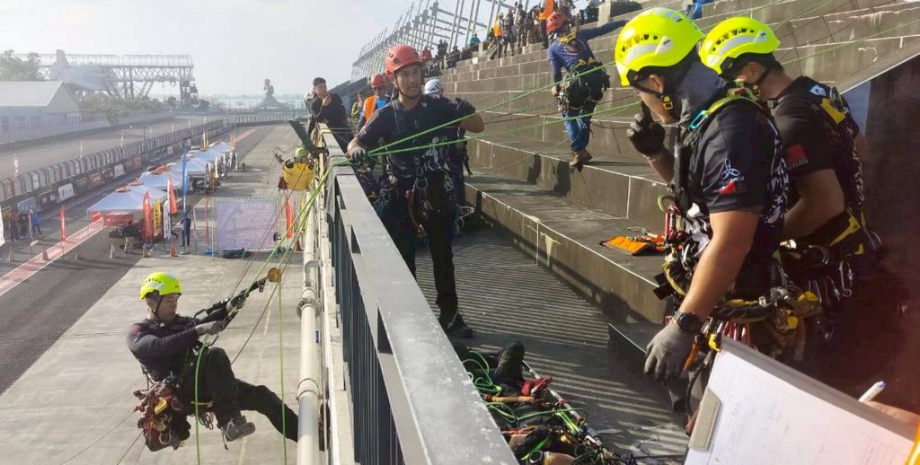 台中市消防局特搜大隊成員所組成的繩索救援隊「虎行」,日前代表消防局,前往屏東縣參加由屏東縣政府消防局主辦之「二0二六繩期國際繩索邀請賽」。此次賽事除集結國內多支具實戰經驗的繩索救援隊伍外,亦邀請來自香港、日本、泰國及菲律賓四個國家的救援團隊參與,總計二十二支隊伍同場競技,透過高強度競賽與實務交流,深化國際間繩索救援技術與戰術的相互學習。