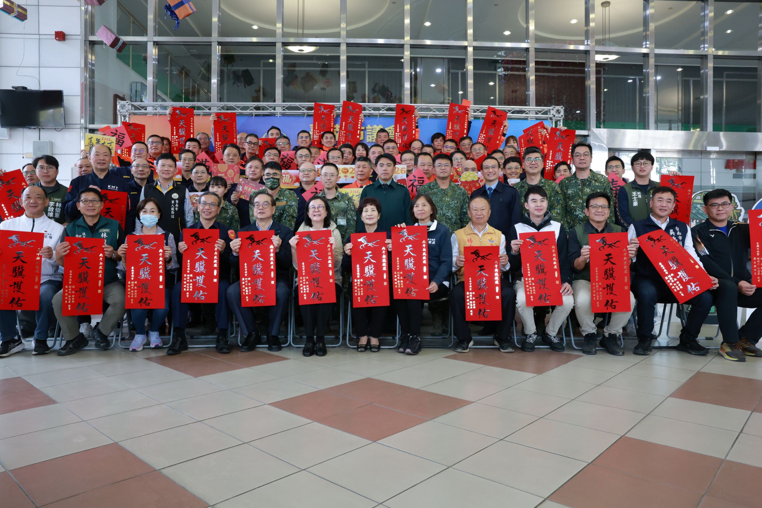 春節將屆,為感謝春節期間仍須堅守崗位、守護市民安全的軍警消人員,台南市議會三十日下午舉辦「守護台灣 感謝有您」軍警消春節聯合慰問活動,向長年守護民眾安全的軍警消弟兄姊妹表達誠摯敬意,並致贈春節慰問金。