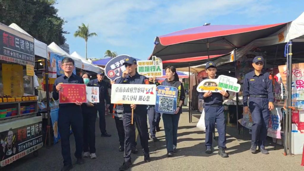 為守護市民交通安全並提升防詐意識,警六分局特於近日鎖定年節前人潮及活動熱點加強宣導。分局長劉全福卅日也特率分局幹部前往水萍塭公園、水交社園區年貨大街及公司尾牙餐廳等處宣導。針對轄區長者較多特性,也針對無照駕駛、高齡換照等新制度加強說明,盼轄區民眾遵守法規、平安過好年。