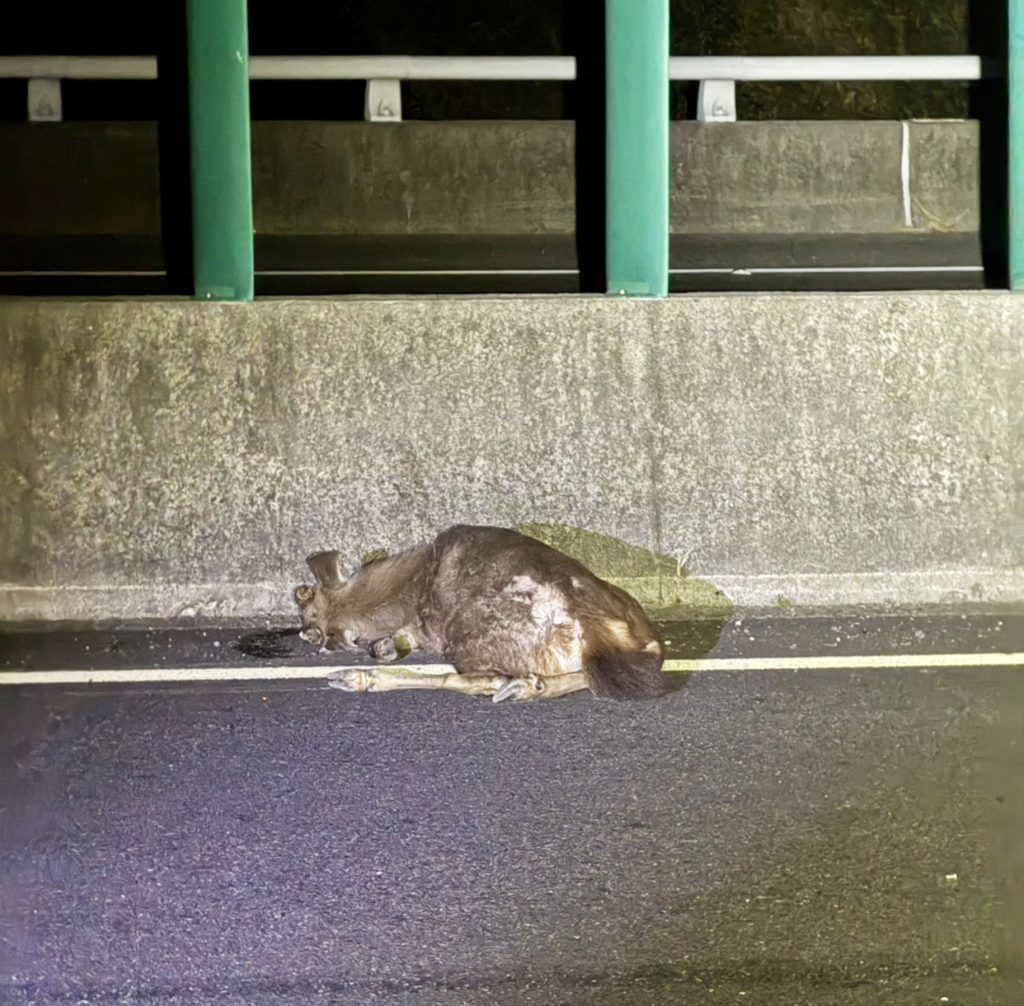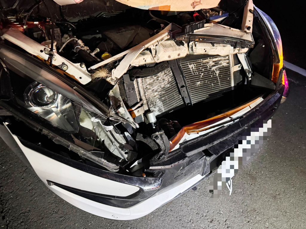 國道居然有鹿誤入,一位民眾卅日凌晨駕車行經國道三號北向白河路段時,意外發現有頭水鹿在車道上,看到鹿時只剩五公尺,來不及閃避只能撞上,自小客的車頭毀損、鹿死亡,還好車上兩人並未受傷。