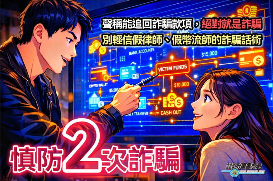 警方強調,詐騙集團常利用被害人急迫心理,以「代追款項」為餌進行二次詐騙。刑事局鄭重呼籲,民眾遭詐後應立即報警,由警方通報金融機構圈存款項,切勿相信任何自稱可追回款項的律師或分析師。律師僅能於訴訟中擔任代理人協助整理證據,無法透過公權力直接追回款項,更不可能藉由操作博弈網站後台巷贏回損失。