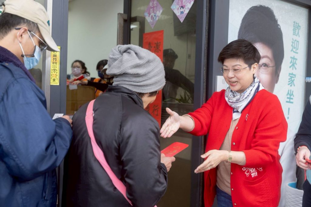 一日上午一早還不到九點半,服務處外便排滿鄉親等候,開始發放新鈔一百元紅包五十個,瞬間被領完,排隊的小朋友沒有領到紅包,臉上露出失望的表情,林志潔見狀又火速加碼十個紅包,讓排隊的小朋友可以領到新鈔紅包,小朋友笑顏逐開。