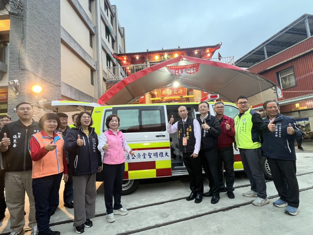 楊元吉說,受贈的救護車命名為「明聖堂號」,代表著大家的祝福與發心,期盼它在最危急即時出勤,如同神明庇佑般,守護大雅區及鄰近地區鄉親生命安全。