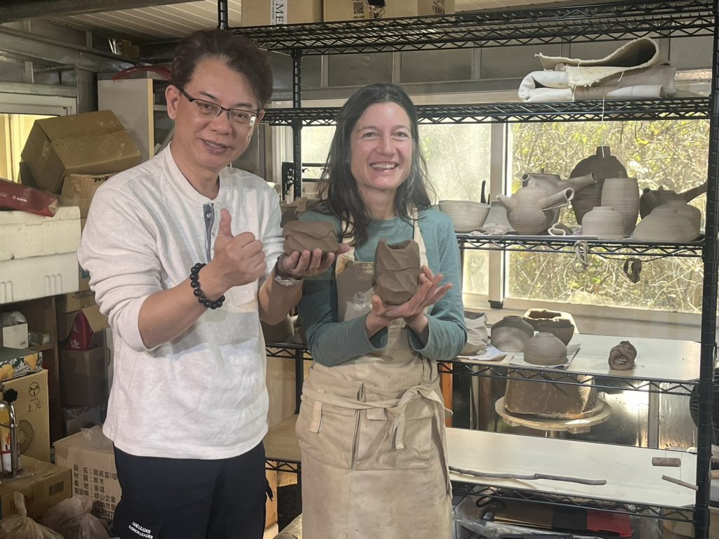 法國藝術家阿妮絲Agnes專程到張桂維在楠西的工作室駐地創作,返法前將展現融入台灣水土風情的陶藝作品。 (記者姚正玉攝)
