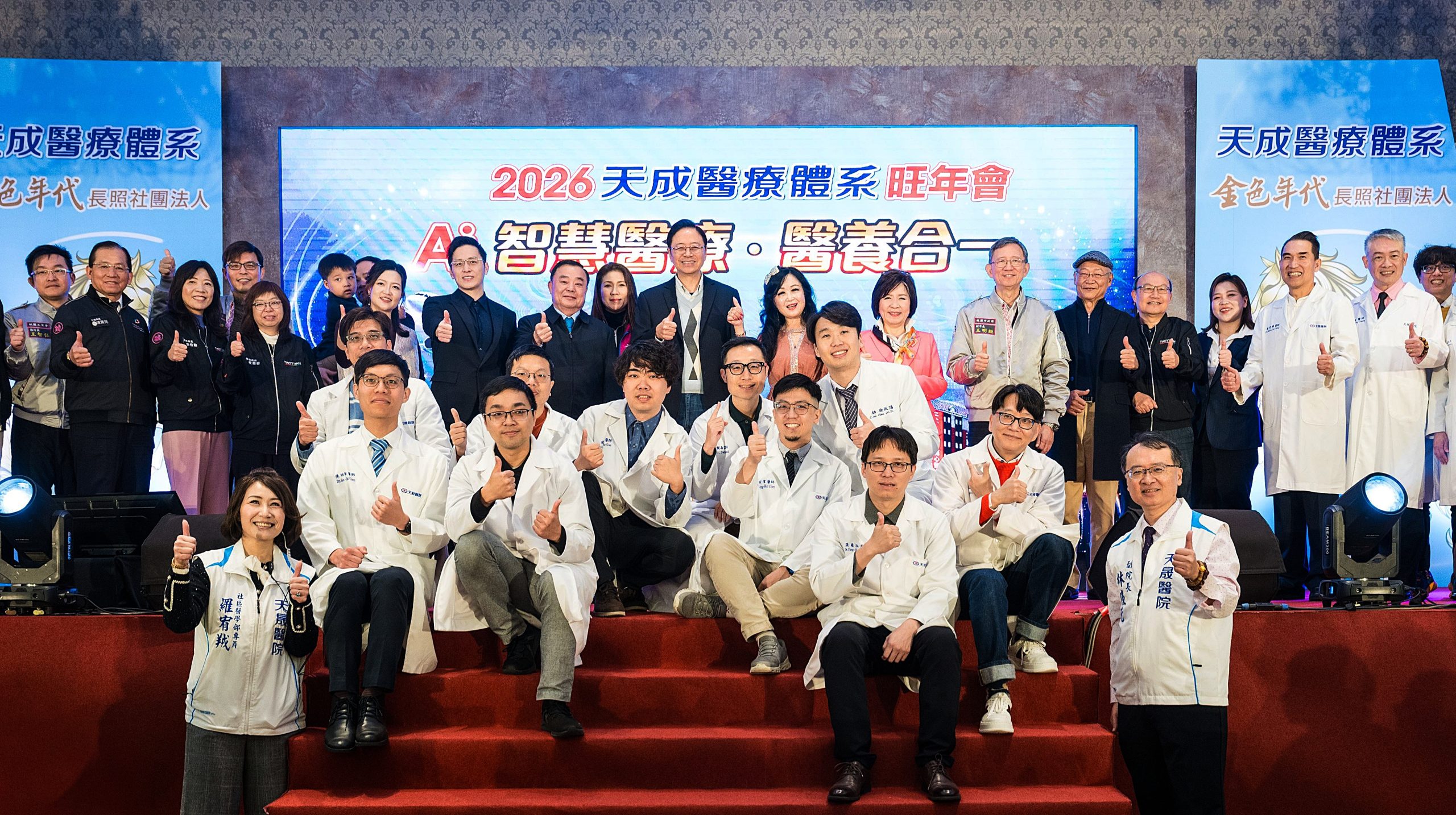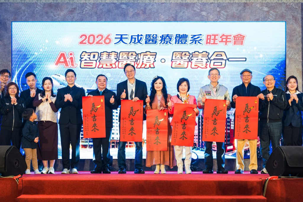 桃園市長張善政一日出席「天成醫療體系旺年會」。張善政表示,自上任以來,市府積極推動擴大肺癌篩檢計畫,過程中,天成醫療體系與市府共同守護市民健康,還獲得智慧醫療國際大獎肯定。此外,市府近年成立智慧產業學院,天成集團亦為重要發起夥伴,協助學院穩健起步,充分展現公私協力推動智慧醫療產業的豐碩成果。