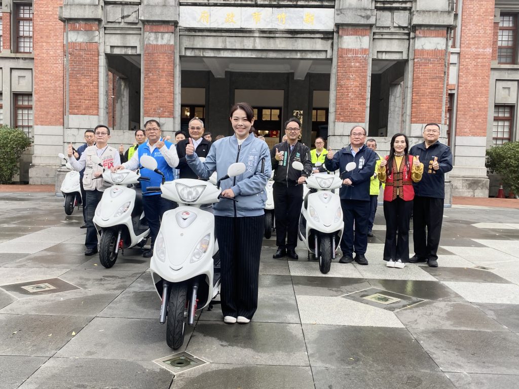 新竹市政府二日於市府大廳舉辦「汰換巡邏機車捐贈儀式」,市長高虹安將第一線退役、整修完成的十五輛巡邏機車,正式捐贈予六個守望相助巡守隊及交通義勇警察大隊,透過資產活化再利用,讓原達汰換年限但性能良好的車輛,持續投入鄰里治安與交通疏導工作,發揮最大效益。