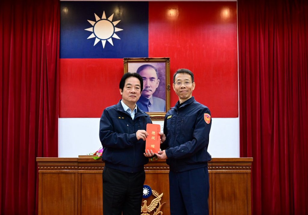 總統賴清德於一月三十日在警政署首次署務會報中,頒發台中港務警察總隊員警維護治安工作獎勵金,由總隊長游永中代表受頒,總統除慰勉員警維護社會治安、打擊犯罪之辛勞外,並肯定員警在工作崗位之付出及貢獻,代表人民對警察同仁的日夜守護,表達感謝之意。