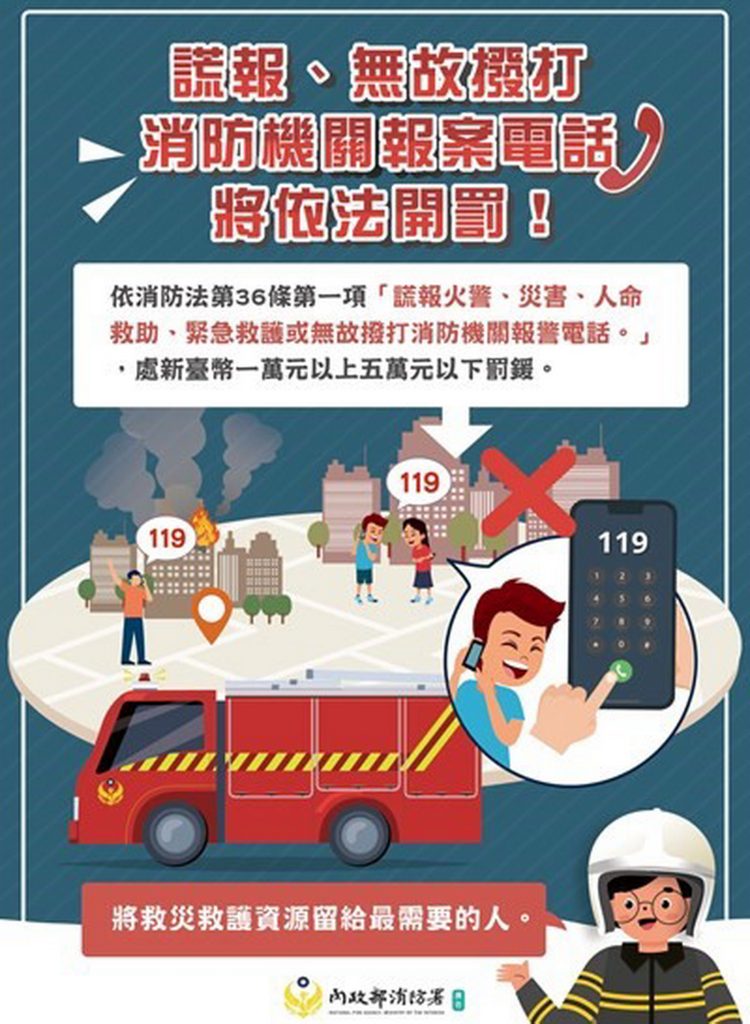 消防局長孫福佑呼籲,一一九是分秒必爭的救命專線,不是發洩情緒、測試設備或惡作劇的管道。任何濫用行為,除須負起法律責任外,更可能間接危及他人生命安全。
