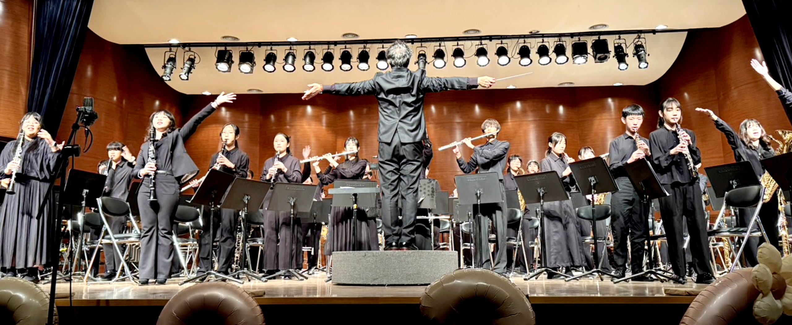 尾聲亦以〈寶島 TAKARAJIMA〉掀起最高潮,場面氣氛熱烈,在觀眾安可聲中,管樂團加演安可曲,並由國三家長獻花致意,感謝孩子三年來的努力與成長,也象徵一段青春旅程的圓滿完成。家長後援會亦致贈指揮呂守仁老師感謝禮,感念其多年來悉心指導與陪伴。
