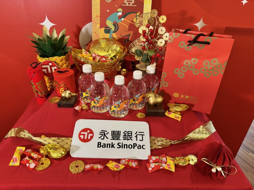 永豐銀行二日舉行記者會,宣布推出發財水、迎福春聯、聚寶袋及發財糖等馬年四寶,規劃將於二月十一日至十三日於全台一百二十五間分行、每日限量發送八十八瓶發財水,民眾前往辦理換新鈔等各項業務,即可免費領取限量開運小物。
