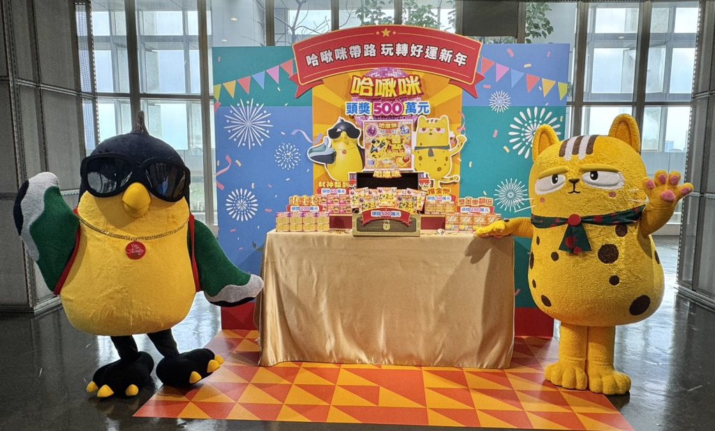 ​為迎接馬年農曆新春,台灣彩券公司今日(3日)首度發表成軍20年來的專屬吉祥物團體「哈啾咪」,並同步推出同名聯名款刮刮樂,正式加入春節彩券戰局。由中國信託商銀執行副總高人傑、台彩董事長黃志宜及總經理謝志宏共同揭幕,象徵公益彩券邁入品牌新紀元。