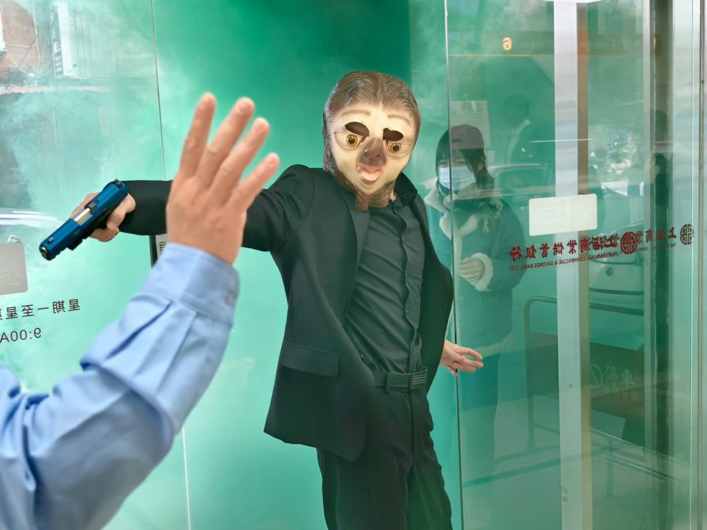 農曆春節將近,街道間洋溢著濃濃的年味,三重警分局為因應春節防搶演練及防詐宣導,特別結合今年最流行之熱門角色「樹懶Flash」,偕同上海銀行北三重分行全體同仁共同操演,模擬歹徒丟擲煙霧彈劫財後逃逸及挾持人質等,並以快打警力線上攔截圍捕,路過的民眾都驚呼好逼真!