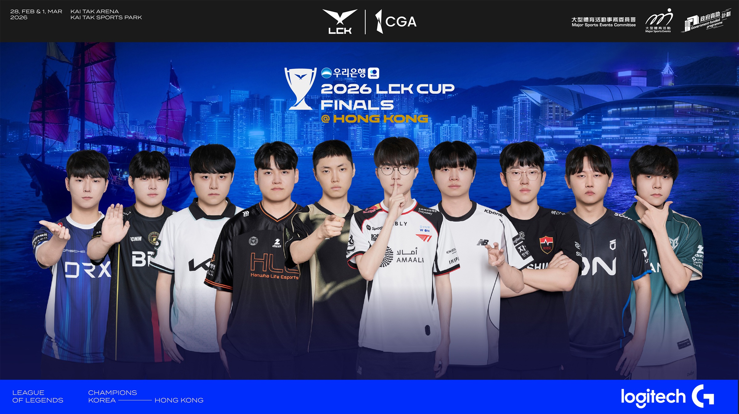 Logitech G 在電競產業的深耕不僅於硬體研發,更展現在對國際頂級賽事的長期支持。近期《英雄聯盟》韓國冠軍聯賽(LCK)宣布其「2026 LCK Cup」總決賽將首度移師海外,將於 2/28 至 3/1 在香港啟德體藝館盛大舉行,Logitech G 身為全球頂尖電競賽事的合作夥伴,除了提供選手專業裝備強大支持,亦誠摯邀請玩家一同見證頂級對決的榮耀時刻,並於決賽期間與電競實況主們親臨現場,直擊世界賽事。2/4 前憑 PRO X2 SUPERSTRIKE 預購憑證,登錄發票即有機會抽中門票與機票,跟著 Logitech G 一起看比賽。從旗艦館的耕耘到國際大型賽事的支持,Logitech G 將持續作為玩家最堅實的後盾!