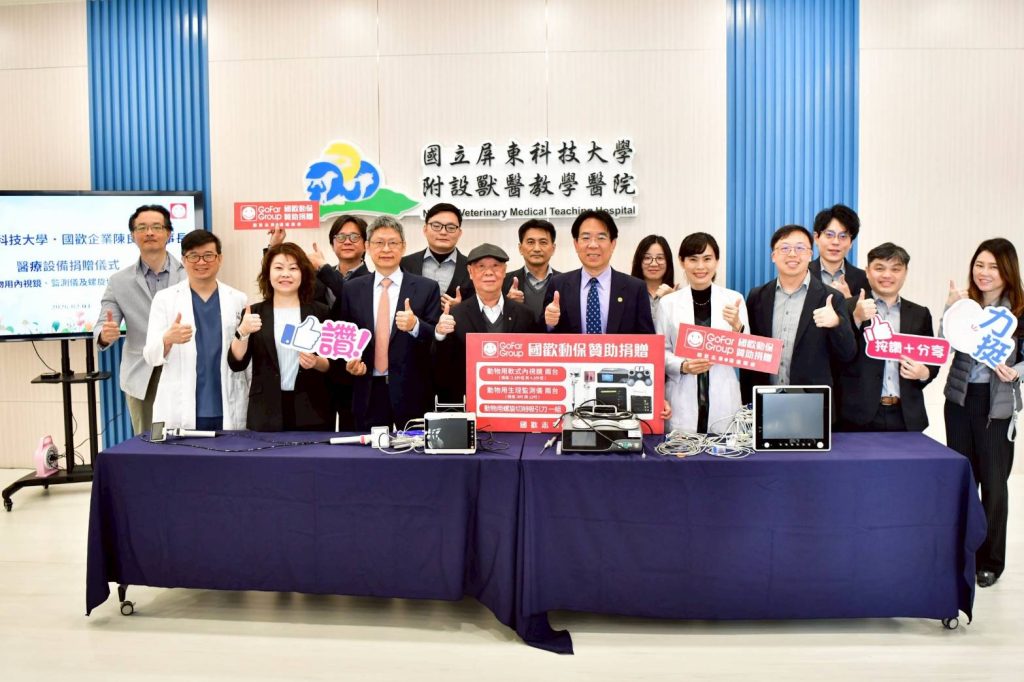 國立屏科大附設獸醫教學醫院城中院區啟用以來,門診服務與手術量能持續攀升,整體醫療需求與轉診量逐步擴大。國歡企業集團陳良榮董事長為回饋母校培育之恩,特於三日於城中院區捐贈動物用螺旋切削吸引刀一組、攜帶式動物用軟式內視鏡兩台,以及動物用生理監測儀兩台等高階動物醫療設備一批,提供院方臨床診療與教學訓練使用。