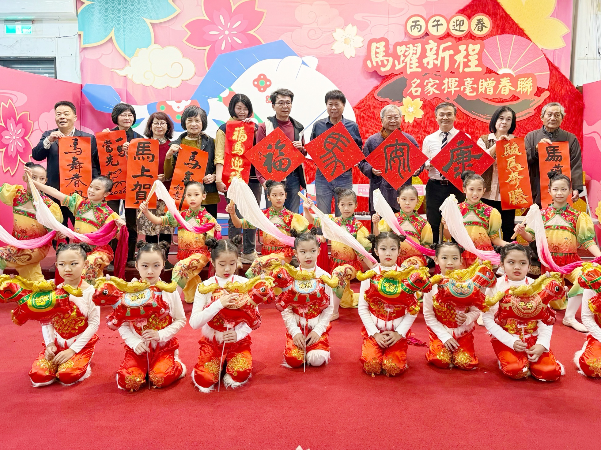 陳銘風也與書法名家一同進行迎春開筆儀式,親自揮毫題寫今年的生肖「馬」字,象徵新的一年開運啟程。