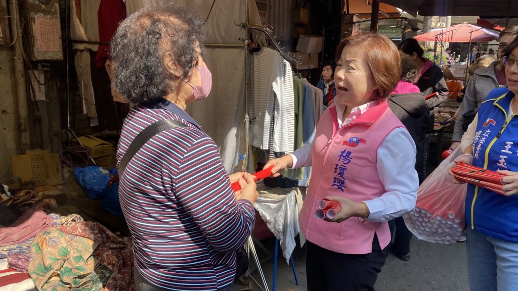 楊瓊瓔出席太平區農會尾牙團拜活動,農會三長表態力挺,前往太平菜市場掃街拜票、懇託支持。