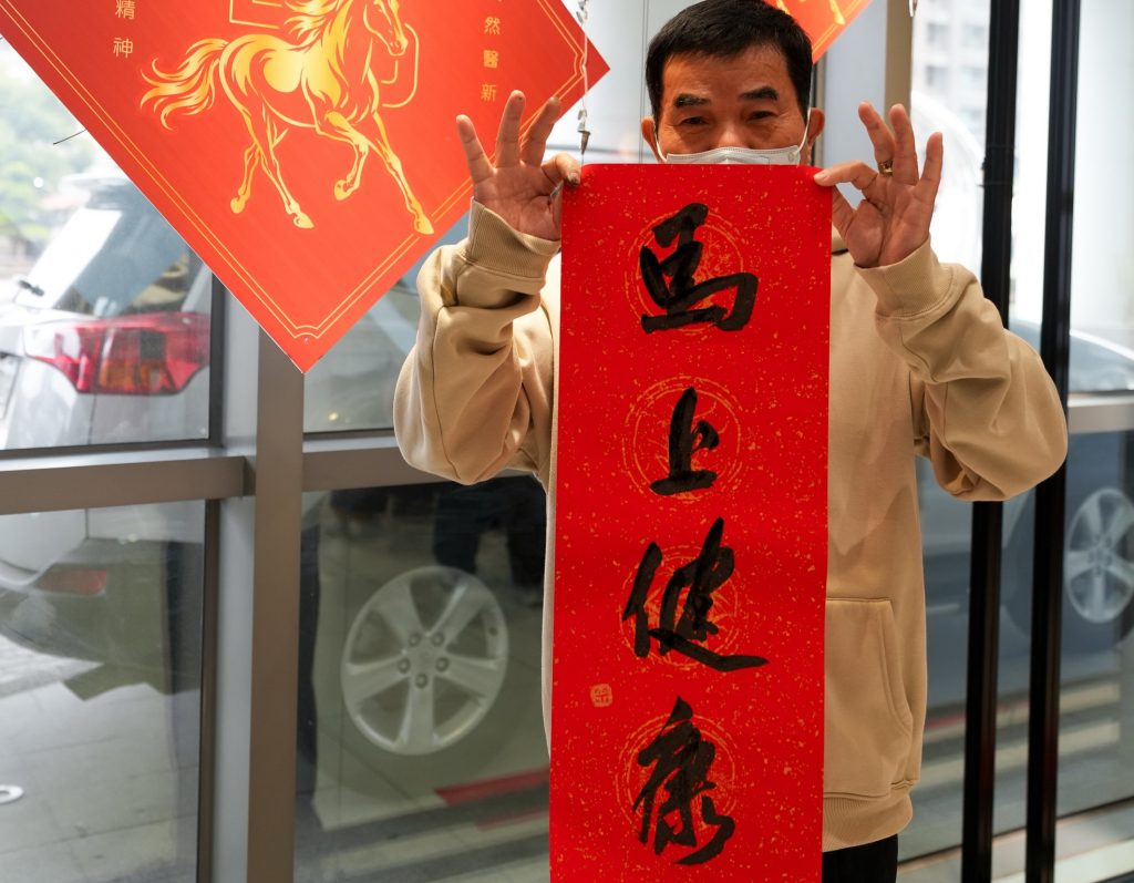 此次活動邀請「書法三老」陳耀東、吳義馴、康文鳳老師,以及陳嘉欣老師共同參與現場揮毫。老師們依民眾需求書寫各式吉祥賀詞,從經典祝福到客製化內容一應俱全,讓每一副春聯都成為獨一無二的新年心意。更有民眾拿到春聯後愛不釋手,表示現代多半使用手機打字或購買印刷春聯,這樣的手寫春聯反而更能感受到人情味,也讓過年多了一份難得的儀式感,直呼「手寫的就是不一樣」。
