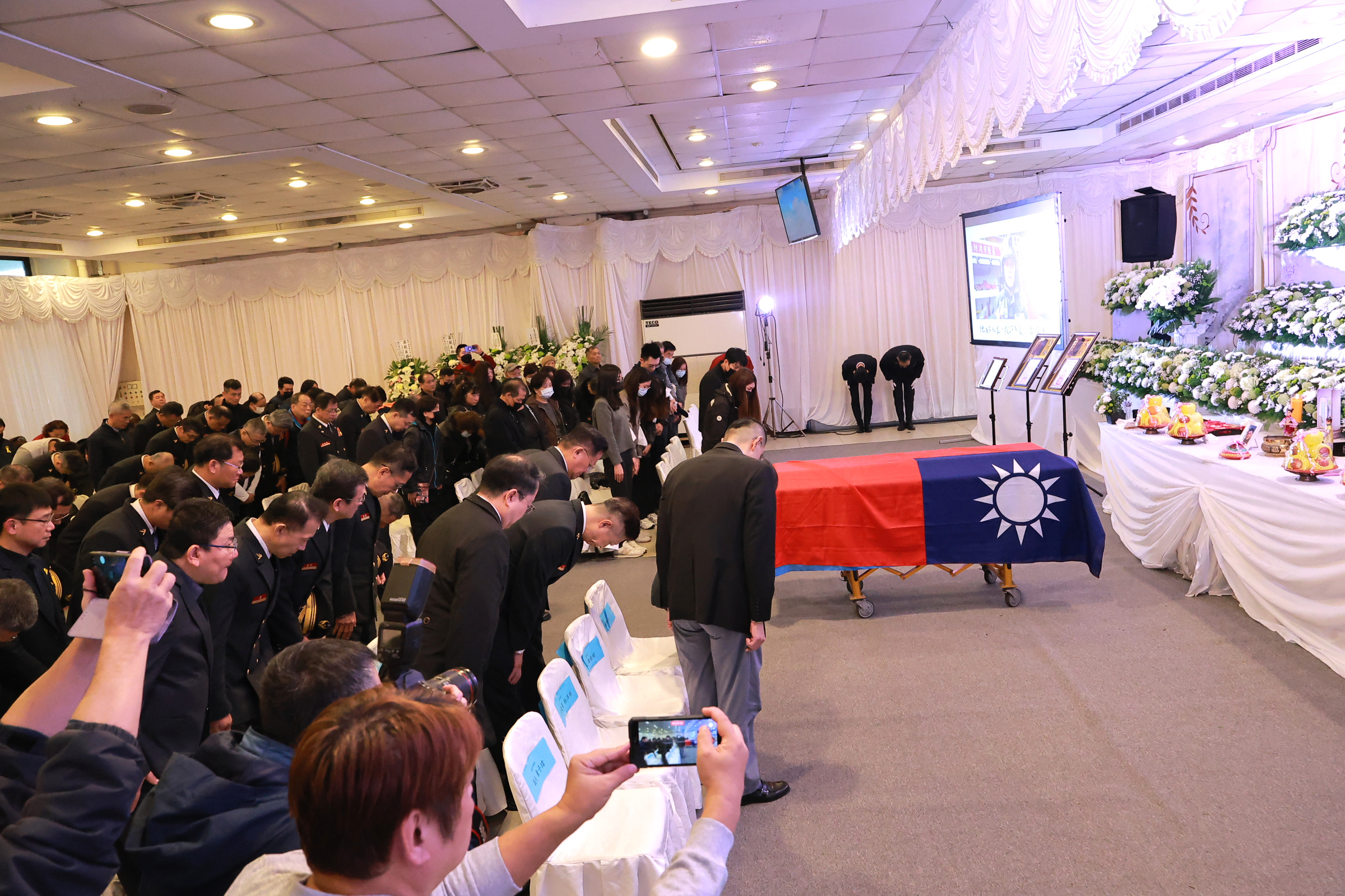 移靈車隊上午十一時從殯葬所出發,消防車輛沿路開啟警報器、警示燈引靈,約十一時二十分抵達仁愛分隊,載運棺柩的靈車開啟後車廂,分隊內各式消防車輛同步開啟警報器、警示燈。