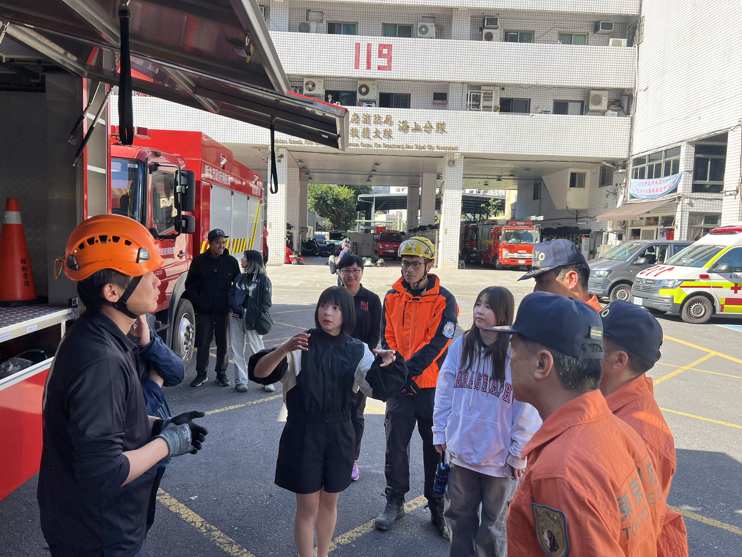參訪行程首先安排參觀海山分隊的56化災器材車 。由於日本教官隸屬的第八方面本部具備豐富的化災處置實戰經驗,雙方針對車輛器材配置及化災防範實務進行深度交流 。隨後,日本教官更親自體驗搭乘台灣消防隊目前最高的70公尺雲梯車,從高空視角觀察新北市的都市救災環境。日方教官亦參與了第一大隊的新生訓練,由台方實行雙節梯高低所救出訓練項目 。日本教官全程專注觀摩,並於課後針對救援細節提供專業回饋與觀察建議。