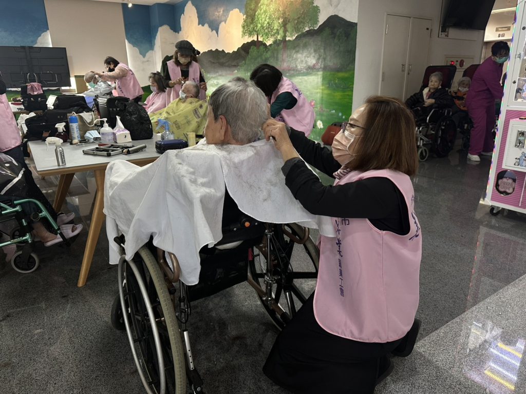 勞工局結合南市美容業職業工會,以專業技術回饋社會,前往護理之家為長輩服務,義剪志工隊在南市美容業職業工會理事長辛美嬌帶領下,與長者親切互動,為老人家整理頭髮,剪出好心情。