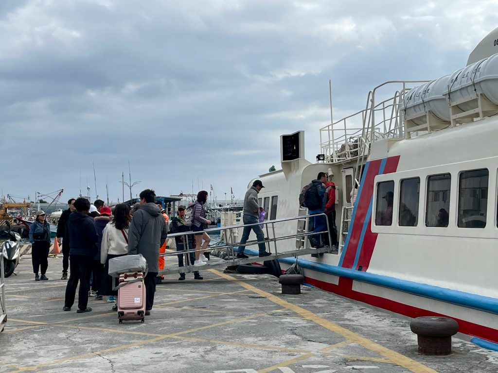 航港局建議民眾預先訂位再行搭船,搭船民眾須接受檢查行李,嚴禁攜帶肉品入境;攜帶鋰電池或行動電源應選用經檢驗合格之產品,並應隨身攜帶,放置視線可及處,不得託運或放置行李箱。