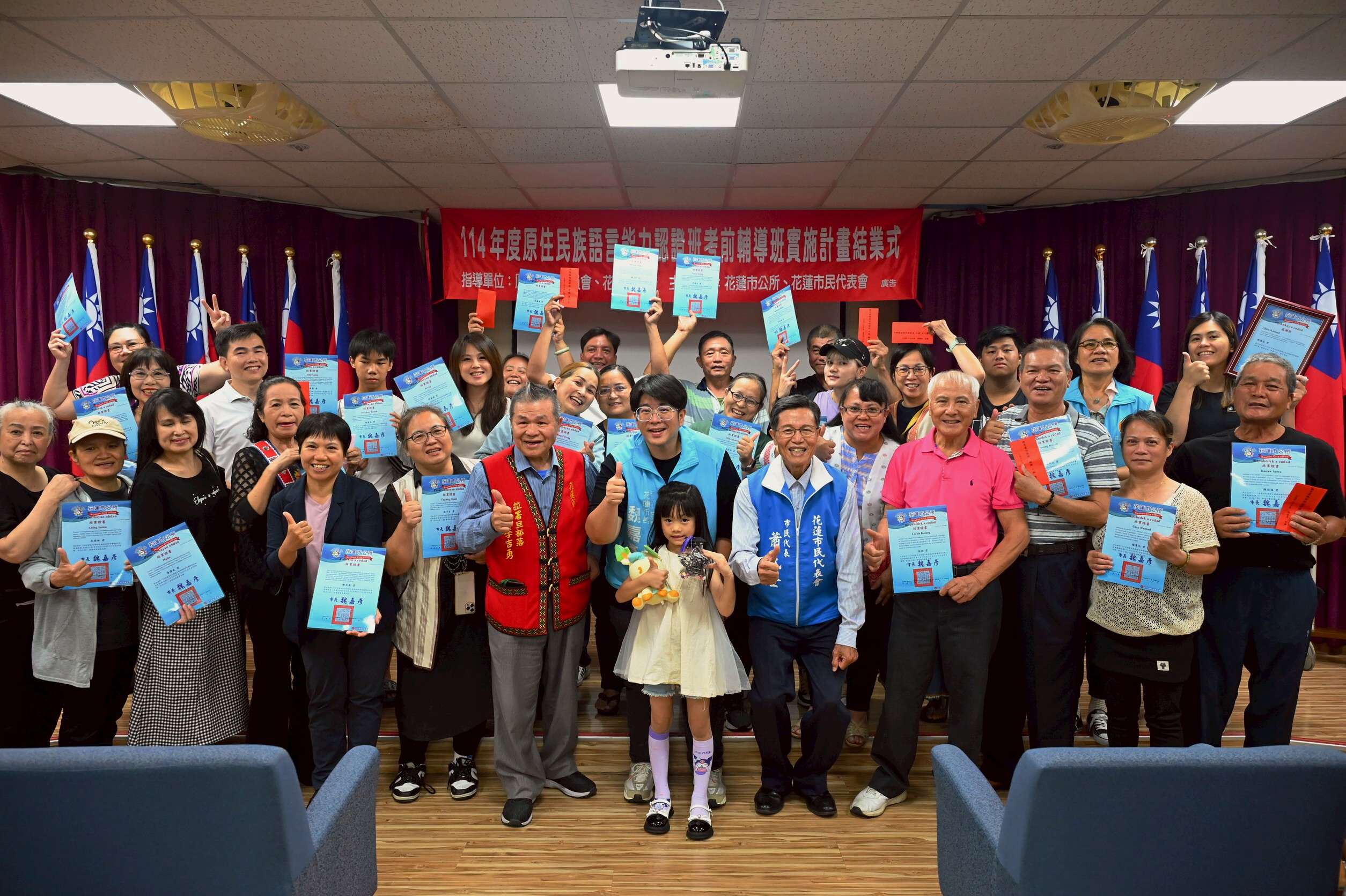 魏嘉彥出,公所去年的族語認證班中,成功協助十九位族人朋友取得認證資格,其中初級四人、中級十二人、中高級三人;尤其報考太魯閣族語的學員,更在中級認證考試中榮獲榜首佳績,展現族語學習的豐碩成果,期盼今年能吸引更多族人加入學習行列,讓族語在花蓮持續發聲、生根茁壯。
