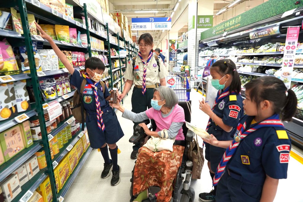 高齡九十歲的蘇阿嬤,面對琳瑯滿目的商品,小童軍們耐心向阿嬤一項一項說明商品細節,不識字的阿嬤笑著說「還好有這些小孫子陪我逛,不然都不知道怎麼買了!」