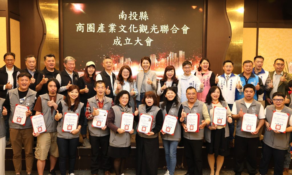 由南投縣各商圈協會組成的「南投縣商圈產業觀光文化聯合會」五日成立,縣長許淑華出席頒發首任總會長張淑貞當選證書;期許帶動縣府與各商圈協會進一步合作,未來也能結合其他縣市商圈擴大串連,聯合行銷,創造更大的商機與榮景。