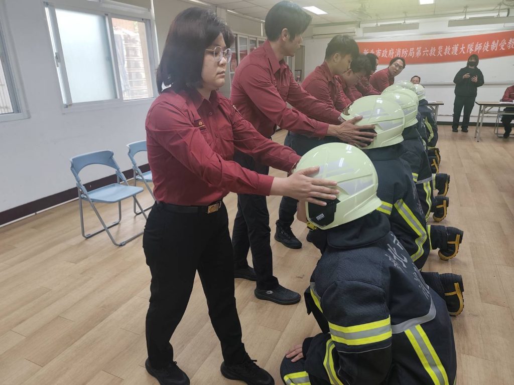 ​值得關注的是,大隊部特別舉辦「師徒制授帽儀式」,由資深前輩親自為學員戴上消防帽,象徵專業精神與救災責任的代代傳承。大隊長羅億田在座談中強調:「做得對比做得快更重要。」他提醒新進同仁,消防工作充滿未知風險,自身安全永遠是第一順位,必須在安全的基礎下,依循指揮體系執行任務,方能有效發揮戰力。