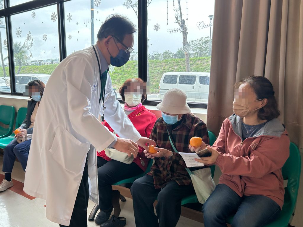 活動結束後,王光德特別準備六百個橘子分送給就診的病患與家屬,祝福大家新年大吉大利、身體健康。王光德表示,馬年對馬偕別具意義,期盼在新的一年,無論在醫療服務或公益關懷上,都能「馬到成功」,做得更好。